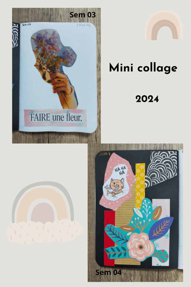 J’ai commencé le défi avec 2 semaines de retard. Donc ci dessous un petit tableau pour mes mini collages semaine 03 + semaine 04.