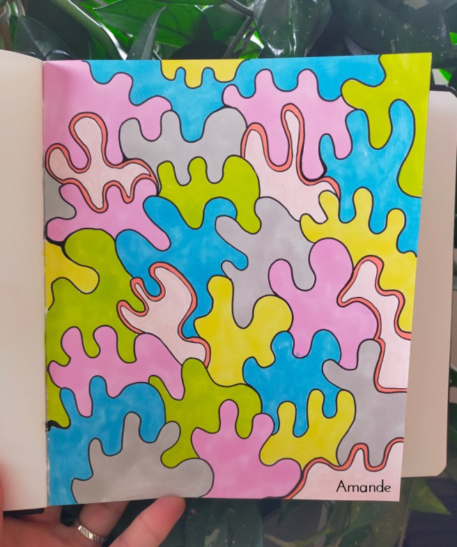 Aujourd’hui je vous présente une page de mon art journal, haute en couleur et en courbes.