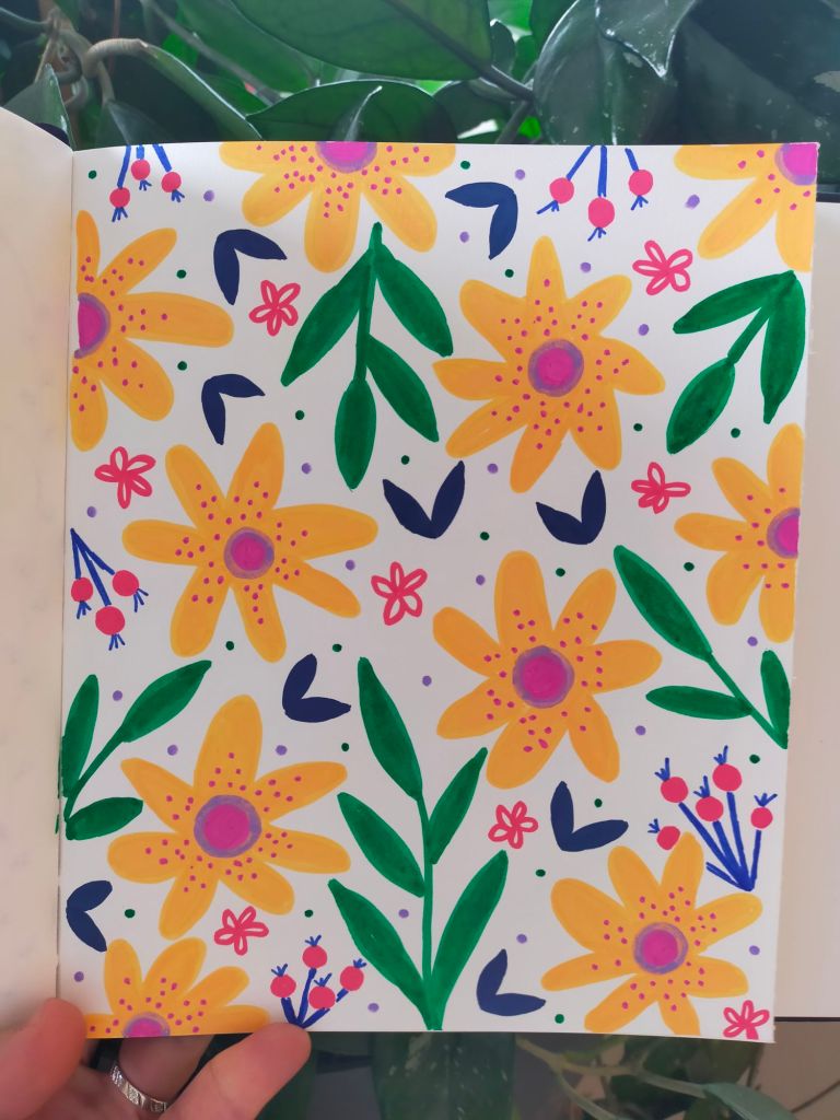 Aujourd’hui je vous présente une page fleurie de mon art journal.