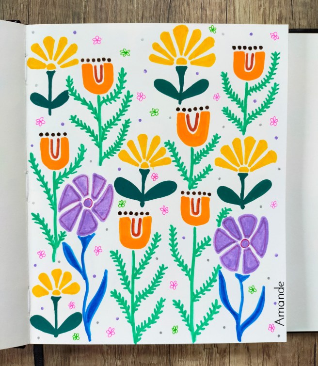Aujourd’hui je vous présente une page fleurie de mon art journal.