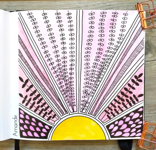 Pour aujourd’hui je vous présente un soleil couchant en zentangle.