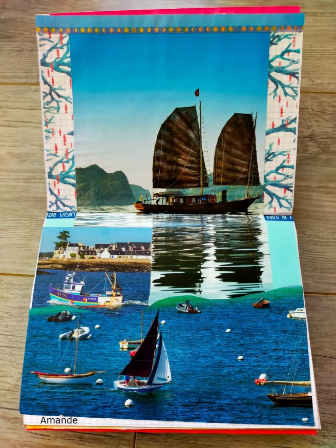 Je ne savais pas du tout comment illustrer le thème d’aujourd’hui, donc je suis aller chercher une page dans mon carnet de collage.