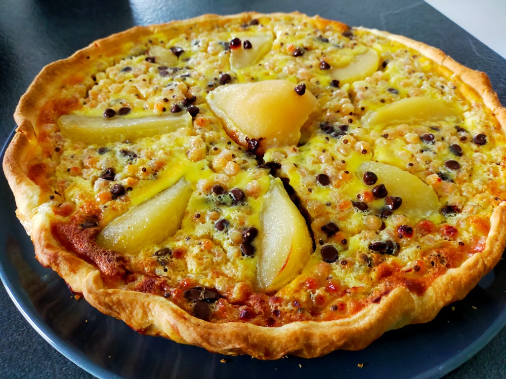 Pour utiliser mes groseilles blanches je vous propose une recette validée par toute la famille une tarte poires chocolat et groseilles.